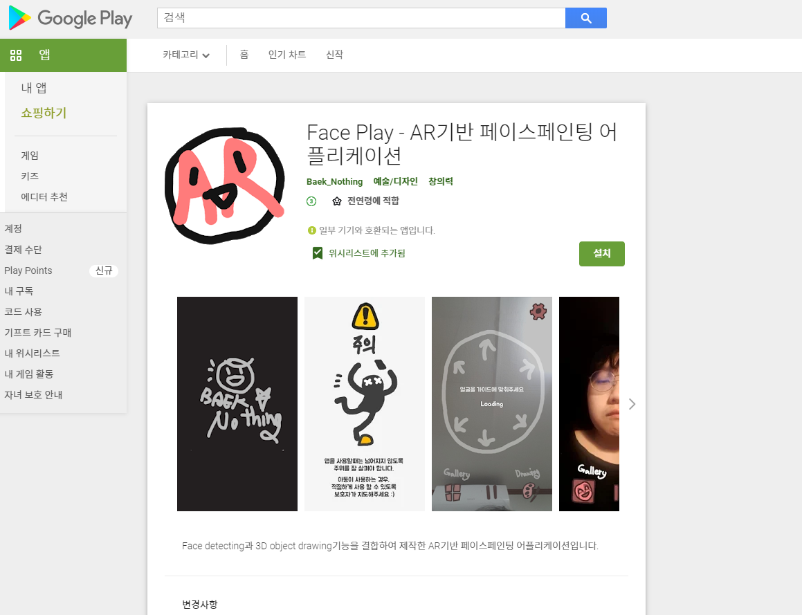 2017년부터 2019년까지 랩실에서 연구된 내용을 바탕으로 제작된 AR 페이스페인팅 어플리케이션. 리드개발자님이 건강상의 문제로 하차하면서, 처음으로 팀 단위에서 주도적으로 개발을 진행했던 프로젝트이다.
